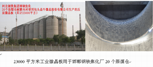 壓延工業微晶板材是以金屬尾礦為原料,經熔化、壓延成型、核化、晶化、退火而成的一種高強度、高耐磨、耐腐蝕的新型高科技工業防護材料和建筑材料。可大量替代不銹鋼、鑄鐵、鑄石、耐酸磚、花崗巖、大理石、高分子密度板等,廣泛應用于煤炭、鋼鐵、電力、化工、有色冶金等行業的料倉、漏斗、溜槽、刮板機、表面處理等部位,造紙行業紙漿脫水設備。